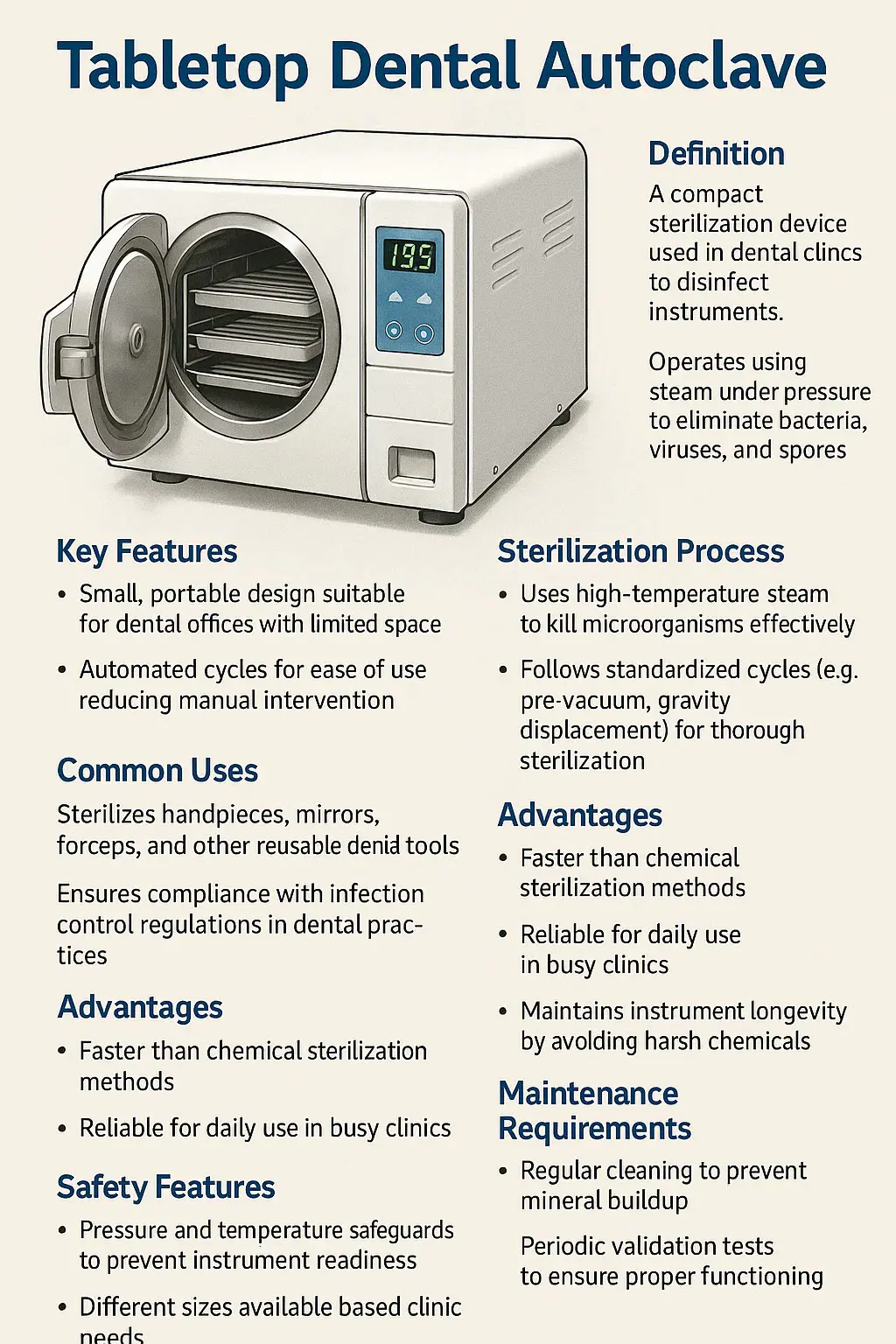 En kompakt steriliseringsenhet som brukes i tannklinikker for å desinfisere instrumenter.
