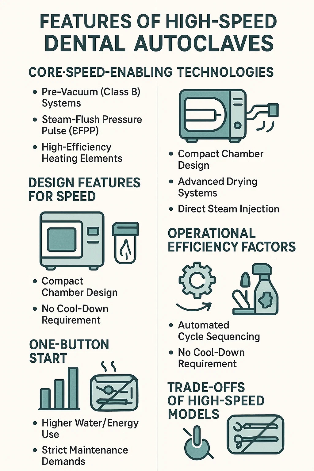 Her er en oversikt over funksjoner som definerer de raskeste tannautoklaver , uten å referere til merker, modeller eller tekniske spesifikasjoner: