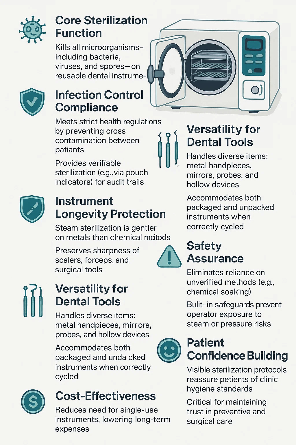 | Forlenger verktøyets levetid | Skånsom dampsterilisering (vs. sterke kjemikalier) | Bevarer skarpheten og integriteten til metallinstrumenter |