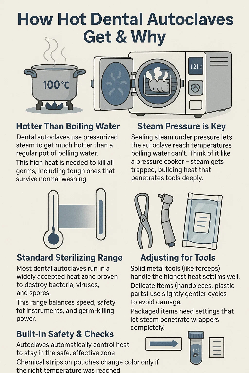 De fleste tannautoklaver kjøres i en allment akseptert varmesone som er bevist å ødelegge bakterier, virus og sporer.